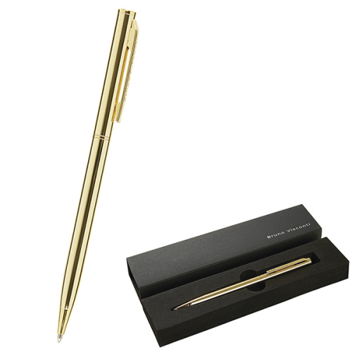 Ручка подарочная шариковая автоматическая " Bruno Visconti " Palermo синяя 0,7мм, толщина письма 0,5мм, поворотный механизм, корпус- нержавеющая сталь, цвет корпуса золотой, металлический наконечник, металлический клип, подарочная упаковка