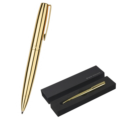 Ручка подарочная шариковая автоматическая " Bruno Visconti " Sorrento синяя 1,0мм, толщина письма 0,7мм, поворотный механизм, корпус- металл, покрытие прозрачный лак, цвет корпуса золотой, металлический клип, подарочная упаковка