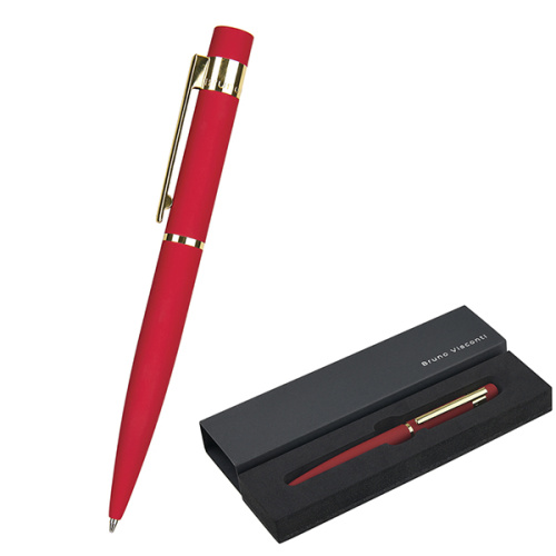 Ручка подарочная шариковая автоматическая " Bruno Visconti " Verona синяя 1,0мм, толщина письма 0,7мм, поворотный механизм, корпус- металл, покрытие soft touch, цвет корпуса красный, металлический клип, подарочная упаковка