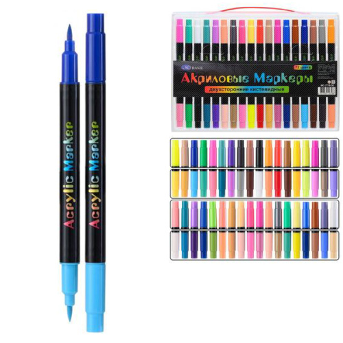 Набор маркеров акриловых " Basir " 36шт 72цв двусторонние, 1,0-5,0мм, кисть, круглый корпус, пластиковая упаковка