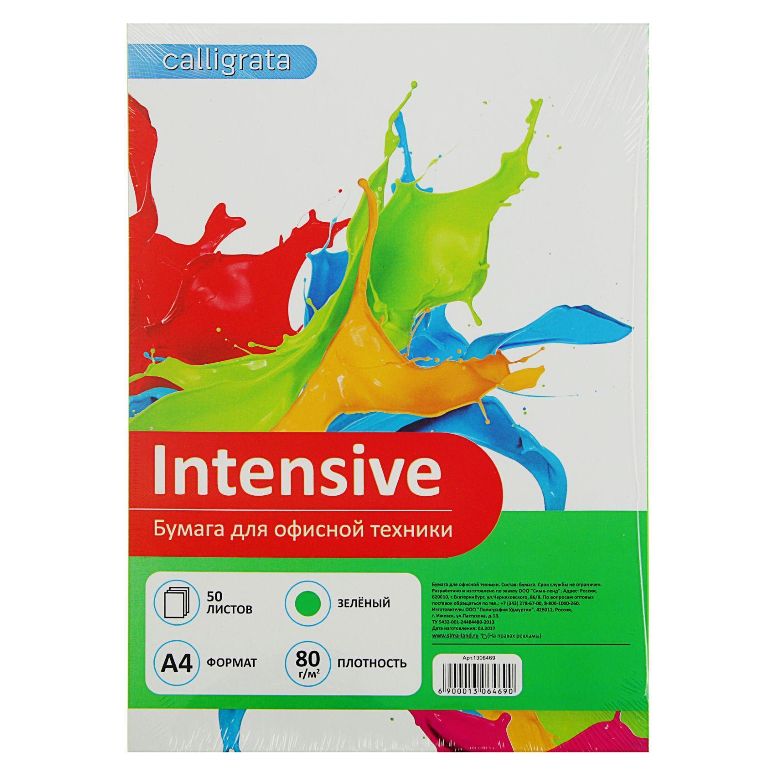 Бумага цветная А4 50л Calligrata Интенсив Зеленый 80г/м2 1306469