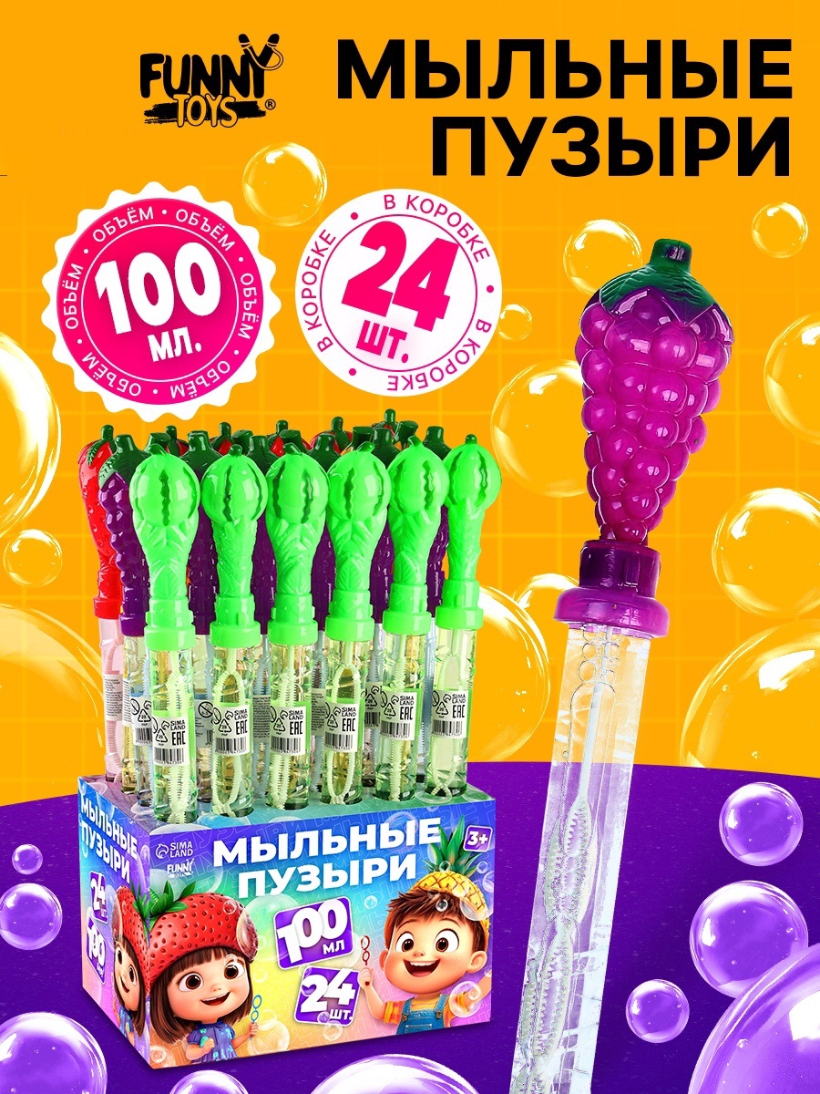 Мыльные пузыри "Фрукты", Микс, 100 мл 2384730