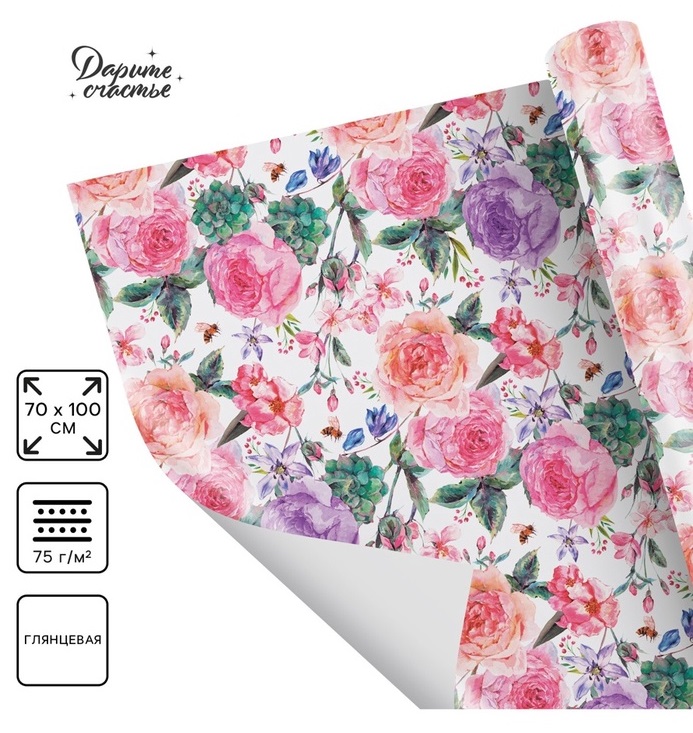 Бумага упаковочная глянцевая «Летние цветы», 70 × 100 см 2505168