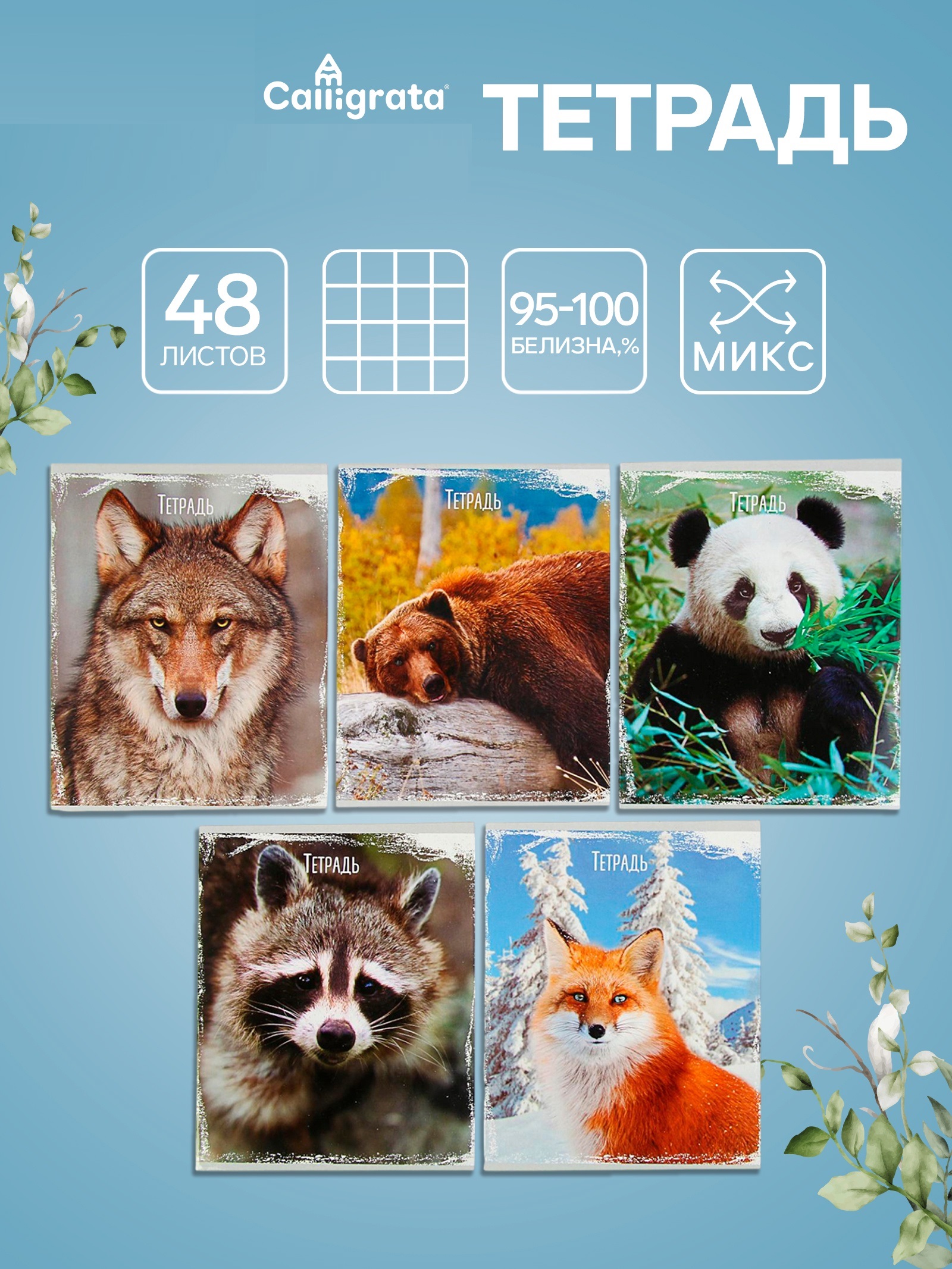 Тетрадь 48л кл Дикие животные, обл мел карт, Уф-лак, блок офсет, 5вид МИКС 3043767