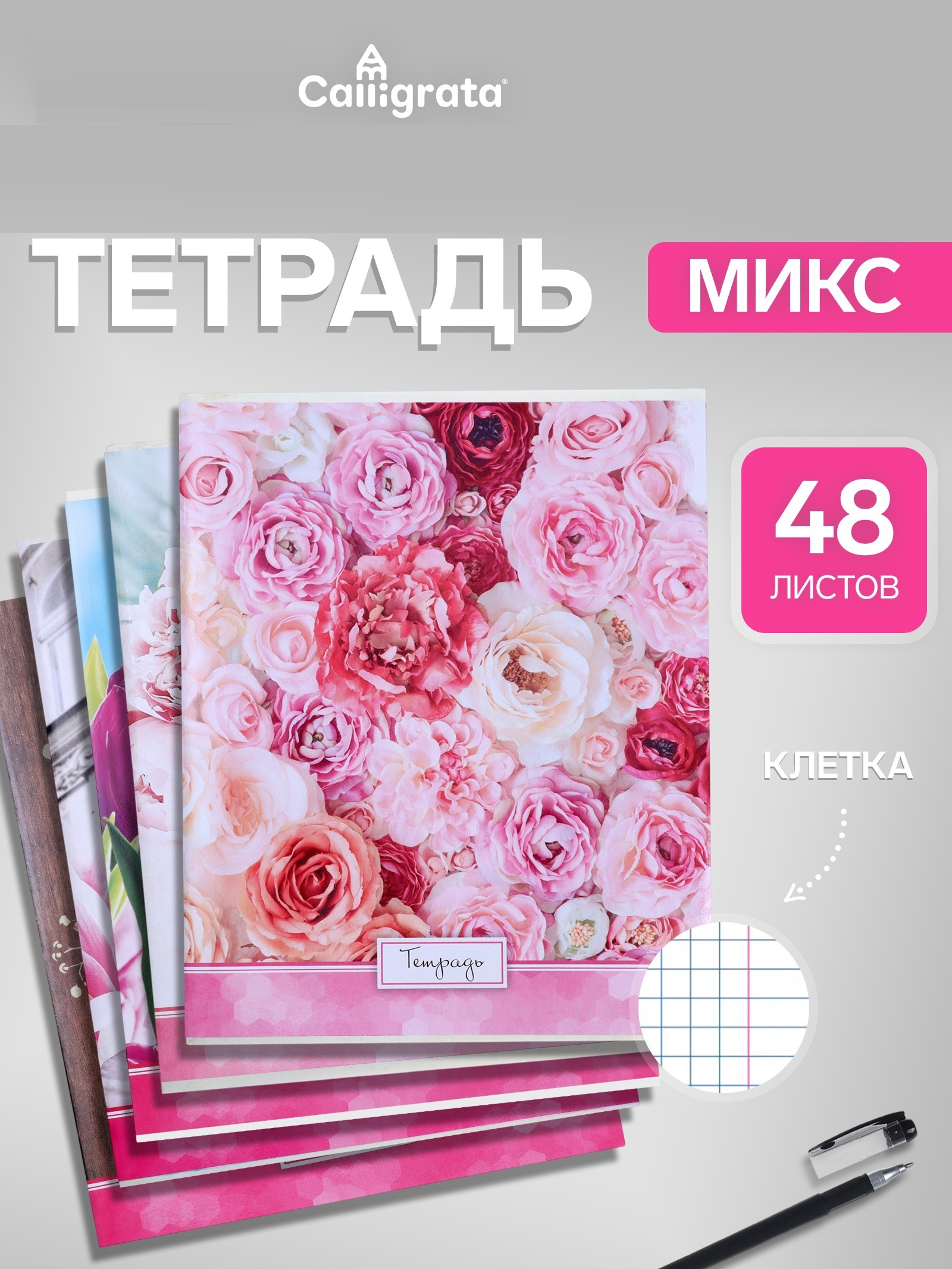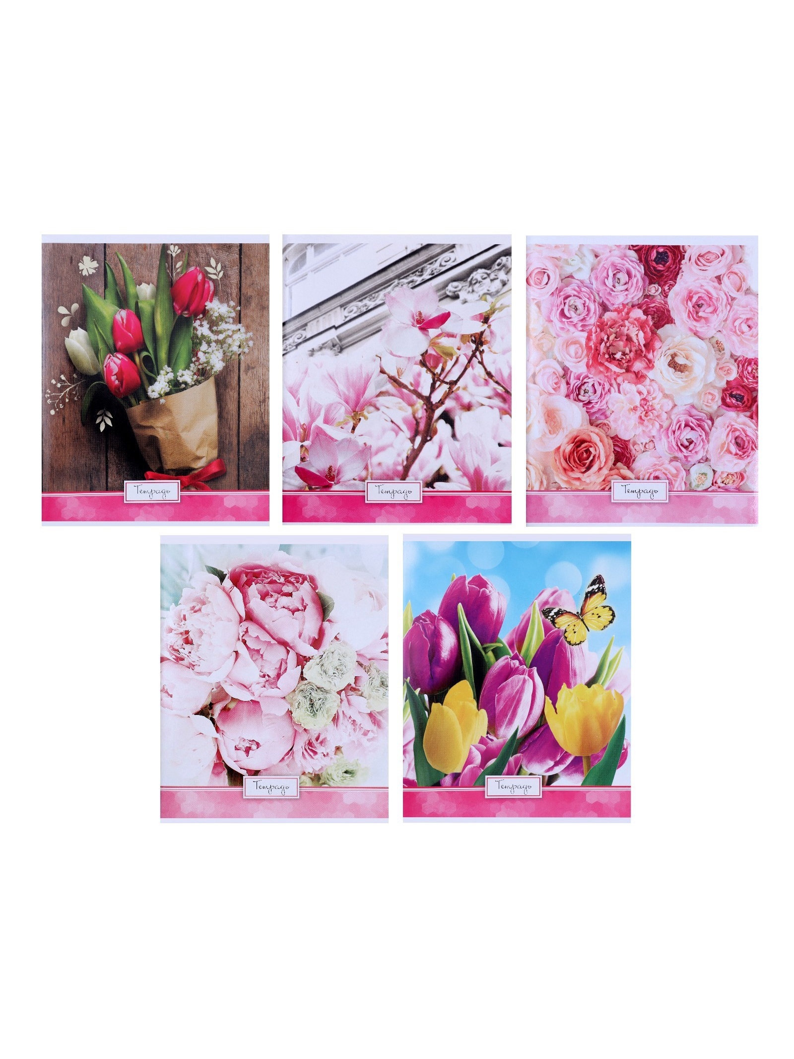 Тетрадь 48л кл Яркие цветы, обл мел карт, Уф-лак, блок офсет, 5вид МИКС 3043784
