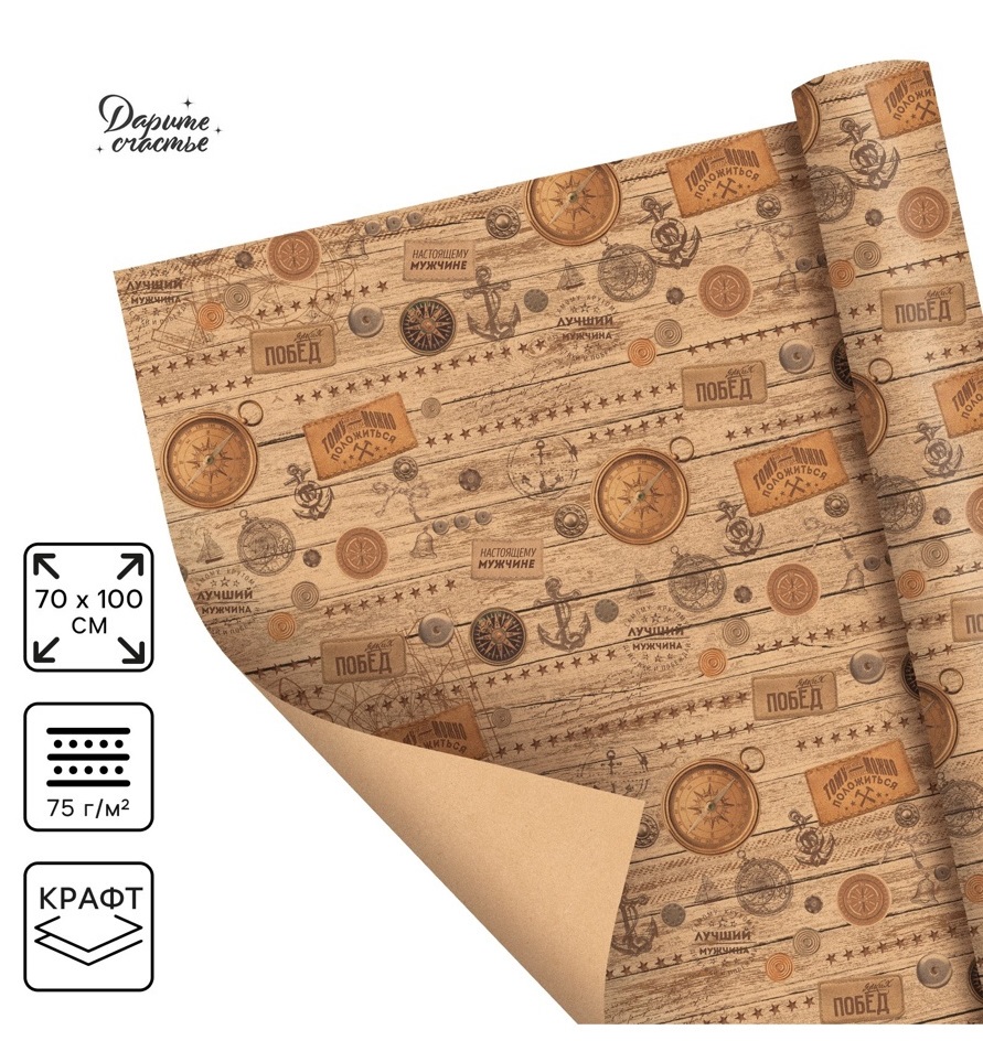Бумага упаковочная крафтовая «Настоящему мужчине», 70 × 100 см 3367745