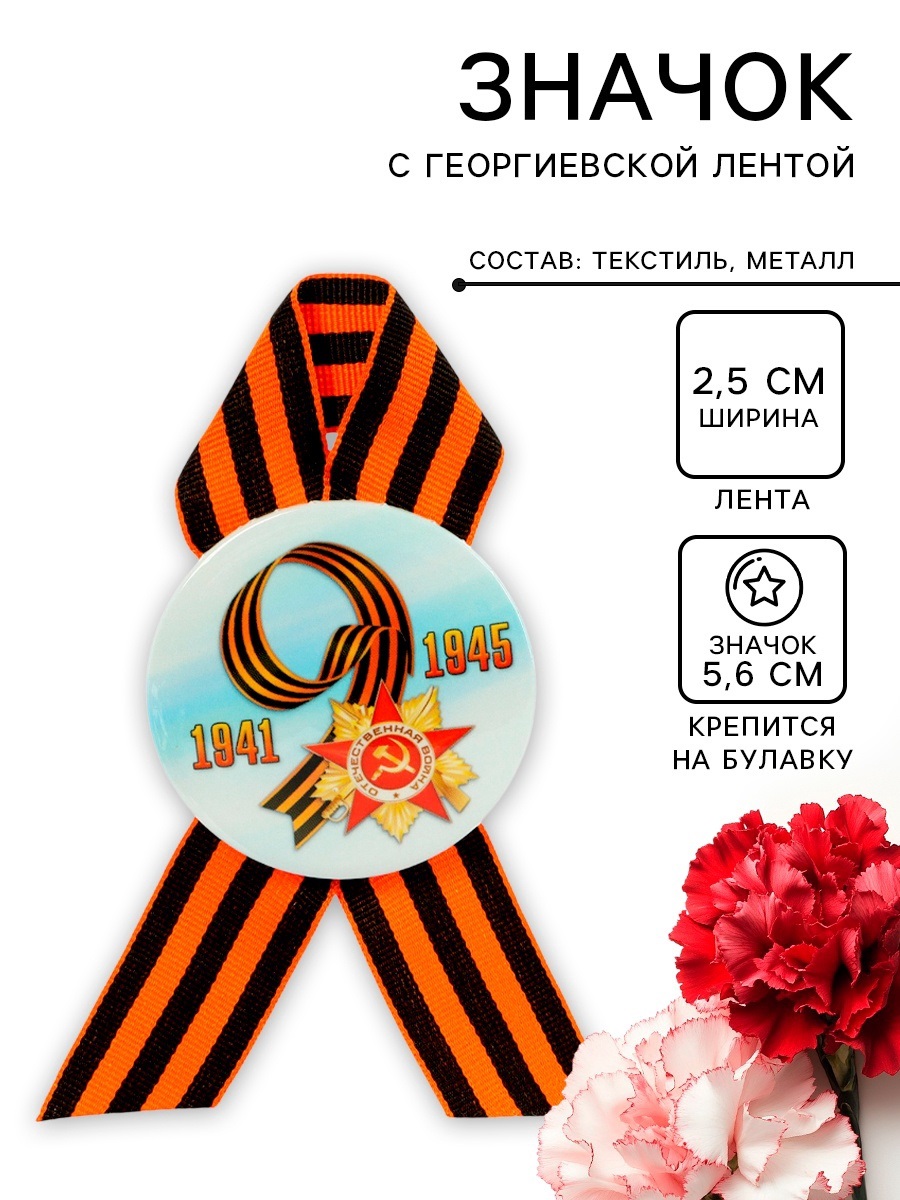 Значок закатной с лентой "9 мая. 1941-1945" красная звезда, белый фон 4137610
