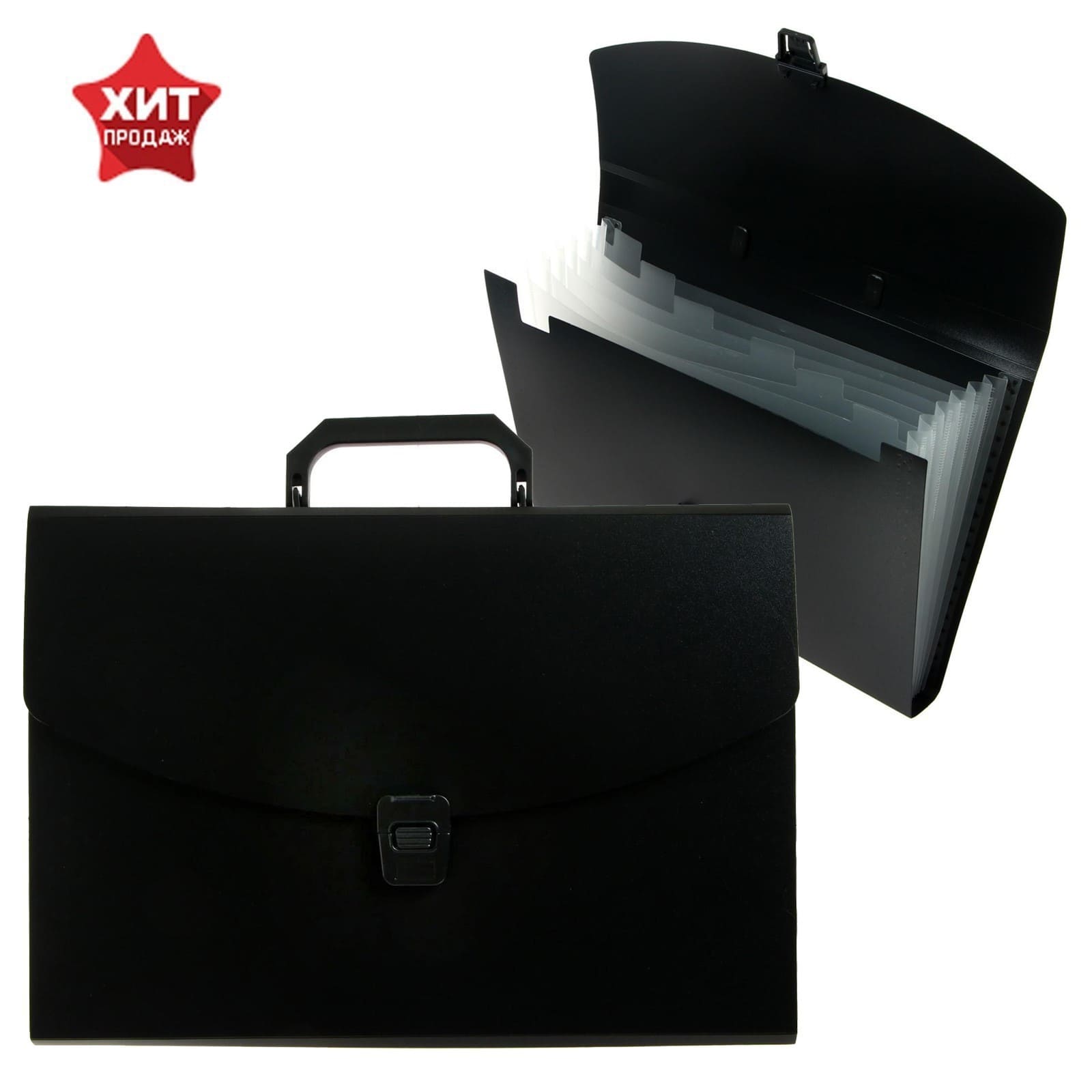 Папка-портфель А4 6отд Calligrata 700мкм черный 6973542