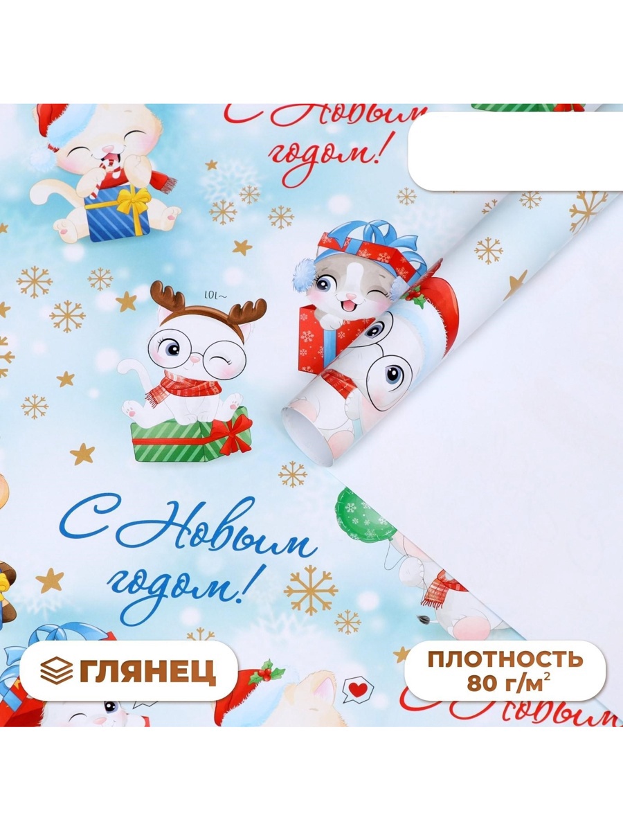 Бумага упаковочная глянцевая "Милые зверята", 0,7 х 1 м, 1 лист, 7122803
