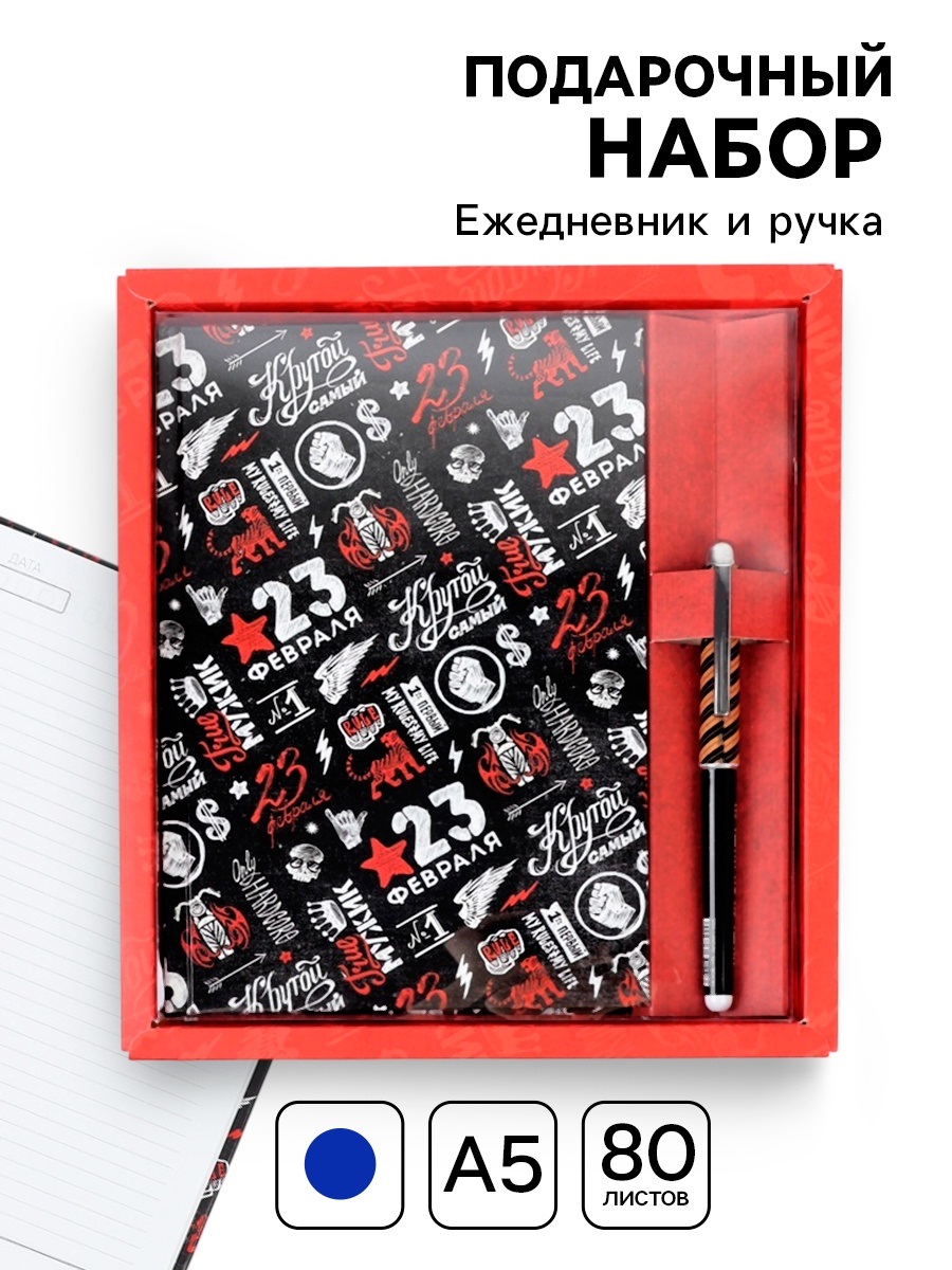 Набор ежедневник А5, 80 л в твердой обложке и ручка "23 февраля шрифтовуха" 7370399