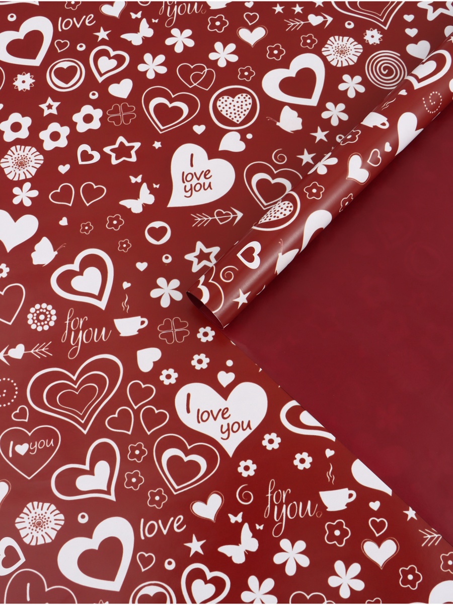 Бумага упаковочная глянцевая "Cердце",двусторонняя, 70 х 100 см 7470658