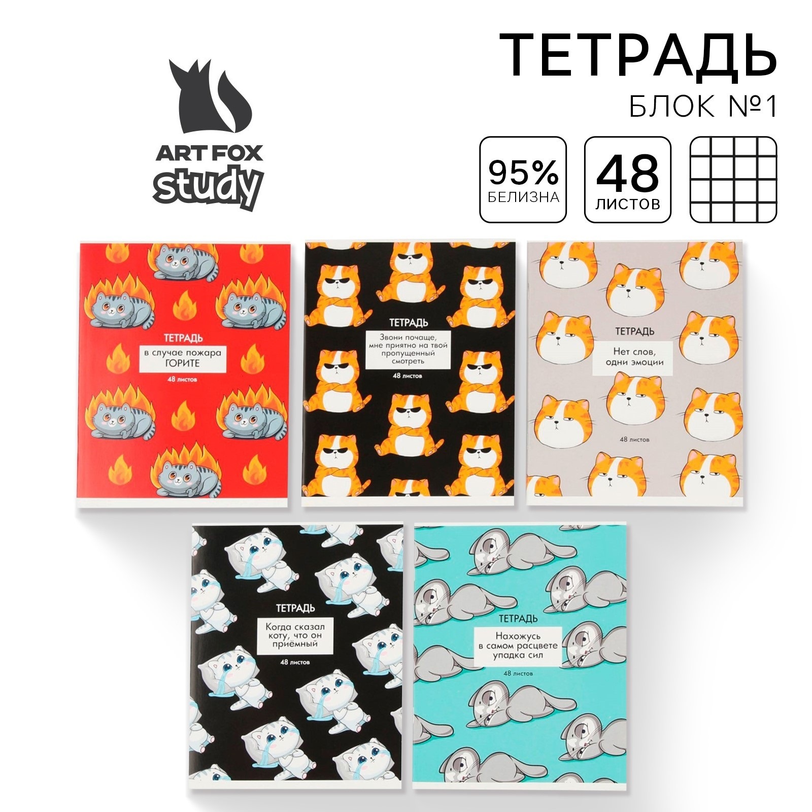 Тетрадь А5, 48 л на скрепке 5 шт. внутренний блок №1 МИКС "Котики приколы" 7509851