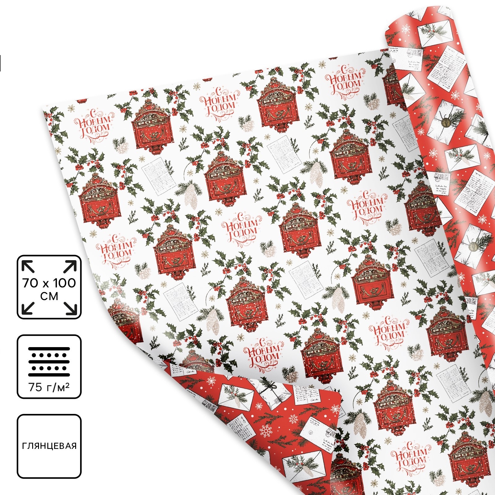 Бумага упаковочная глянцевая двухсторонняя «Почта Ретро», 70 × 100 см 7838737