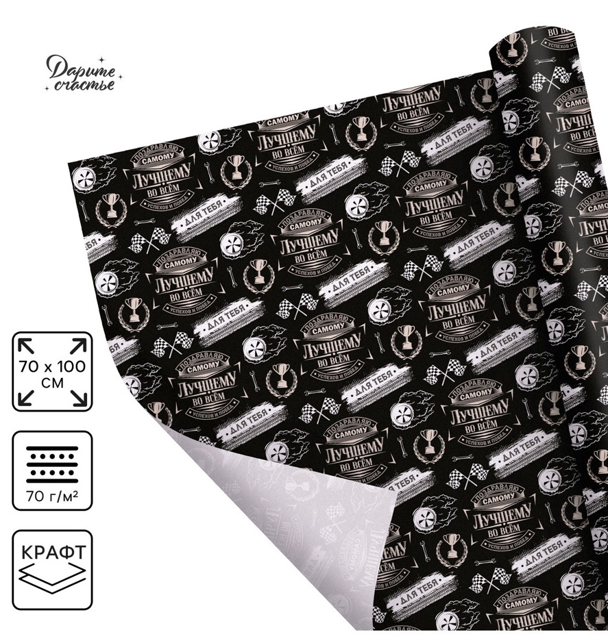 Бумага упаковочная крафтовая «Нашивки», 70 × 100 см 7840561