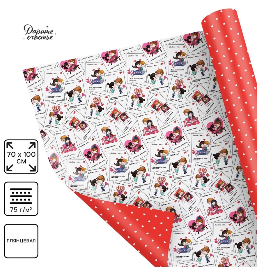 Бумага упаковочная глянцевая двухсторонняя «Любовь это...», 70 × 100 см 9304579