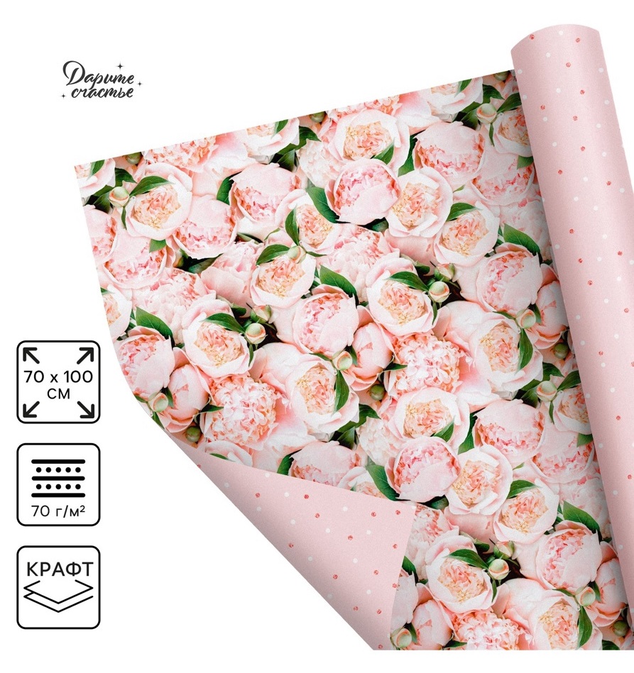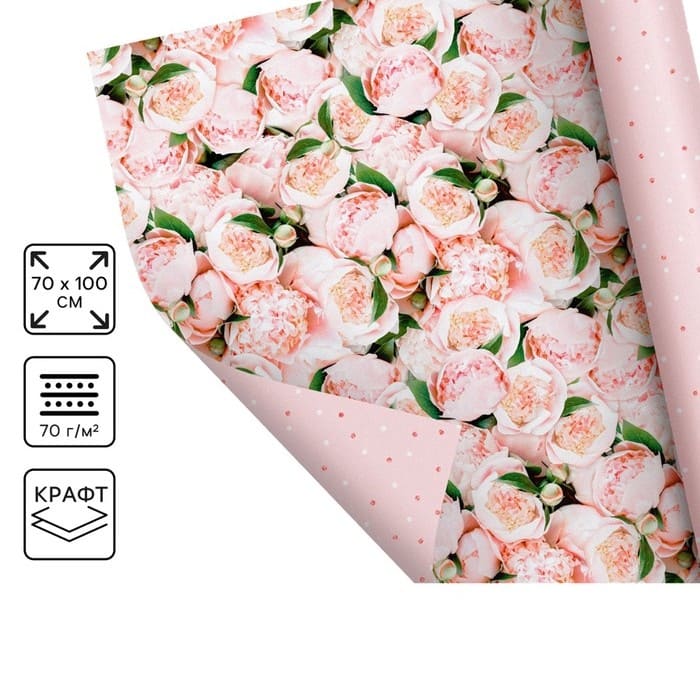 Бумага двухсторонняя крафтовая «Цветы», 70 × 100 см 9459142