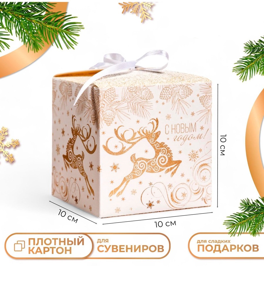 Коробка складная "Снежные олени" 10 х 10 х 10 см 9875901