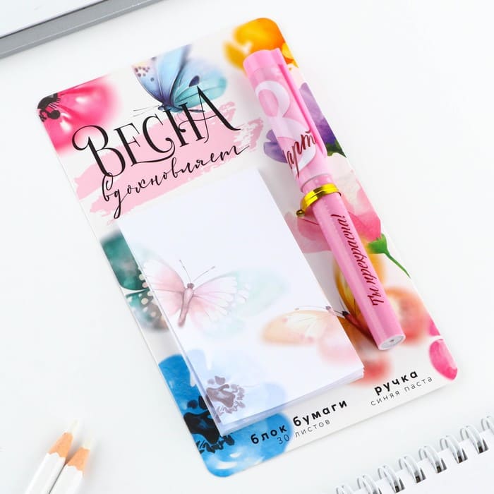 Набор ручка шариковая и блок бумаги 30 л "Весна вдохновляет" 9877845