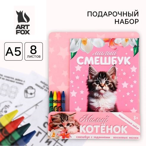 Набор: смешбук А5, 8 листов и восковые мелки "Милый котенок" 9891769