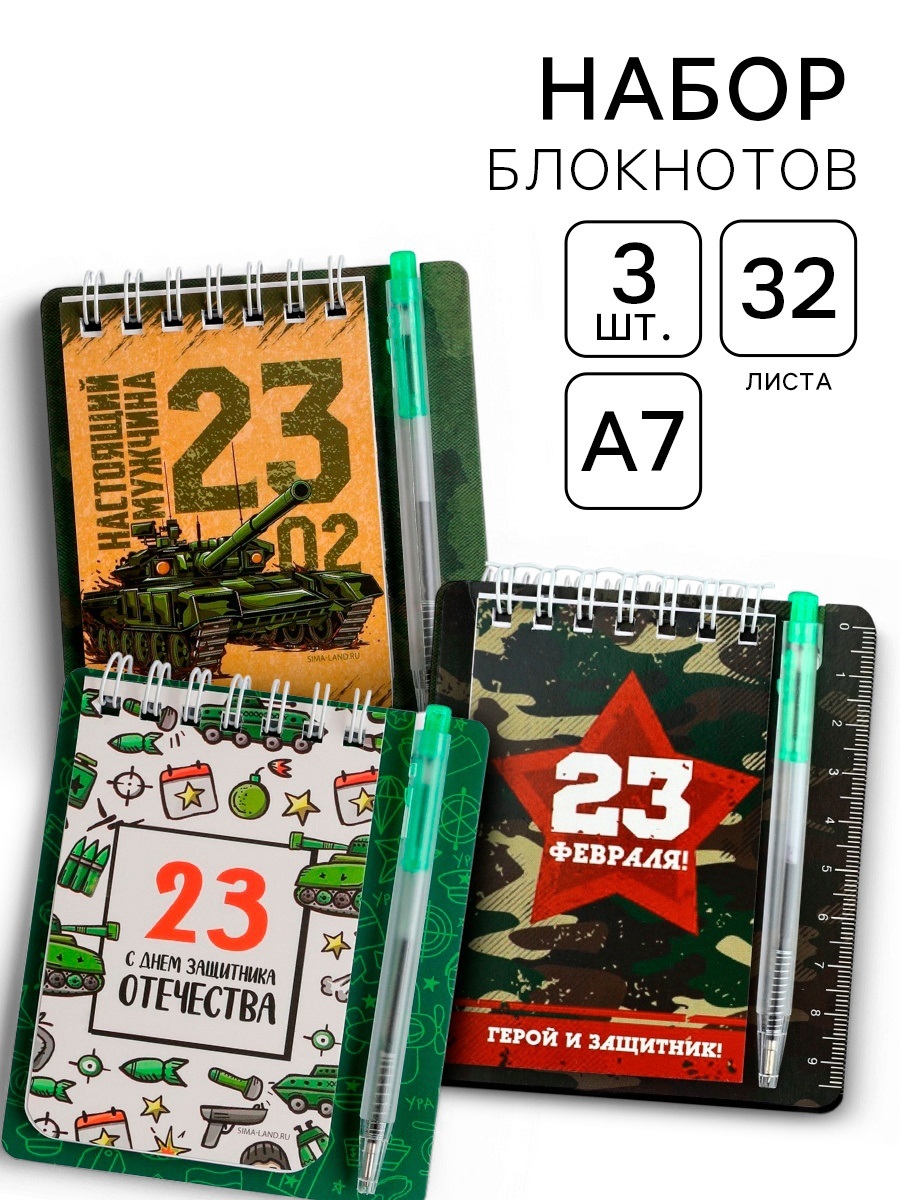 Набор блокнот и мини ручка 9 х 10,4 см. 32 л "с 23 февраля" 10048469