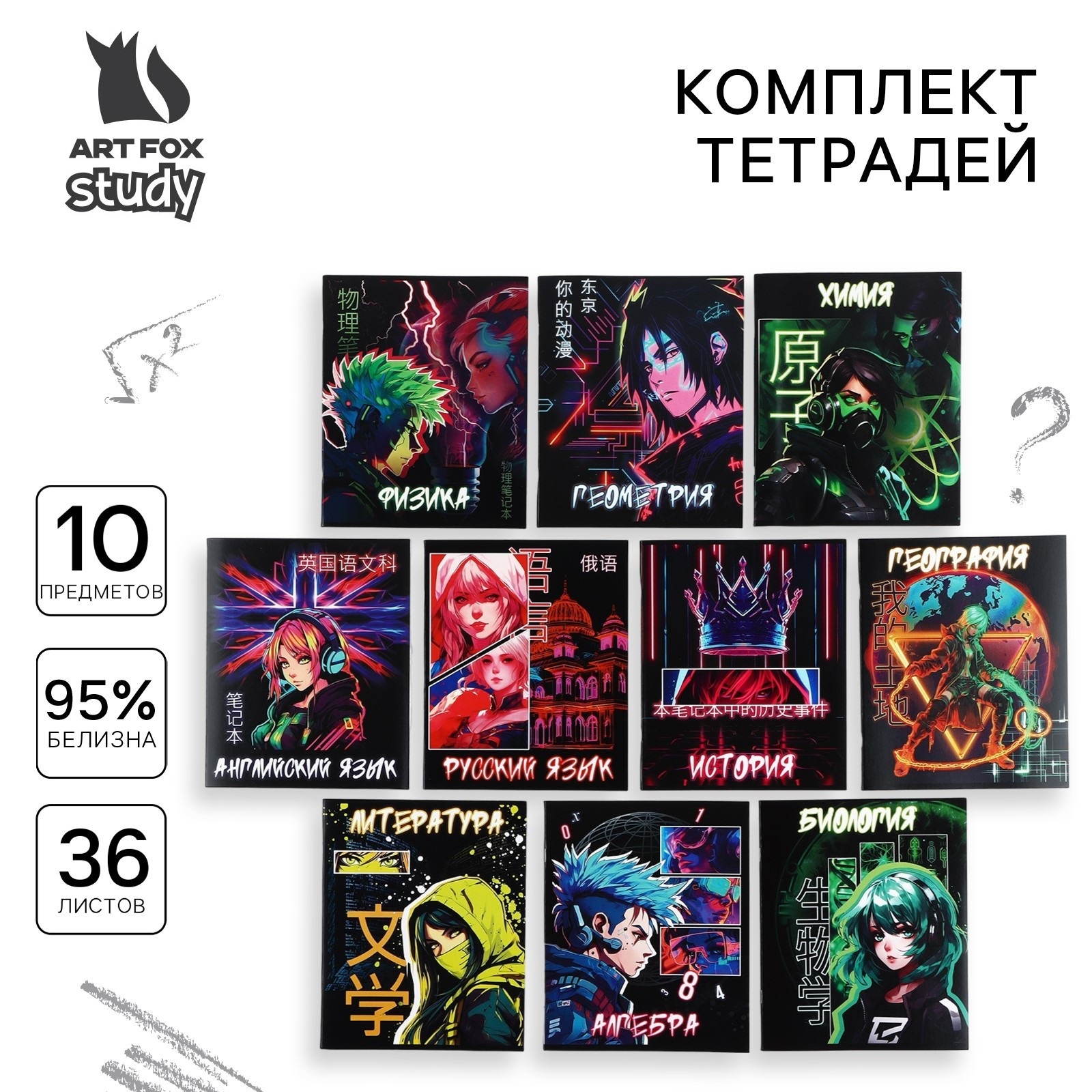 Комплект тетрадей 36 листов, 10 предметов, внутренний блок №1 «Аниме. Неон» 10165773