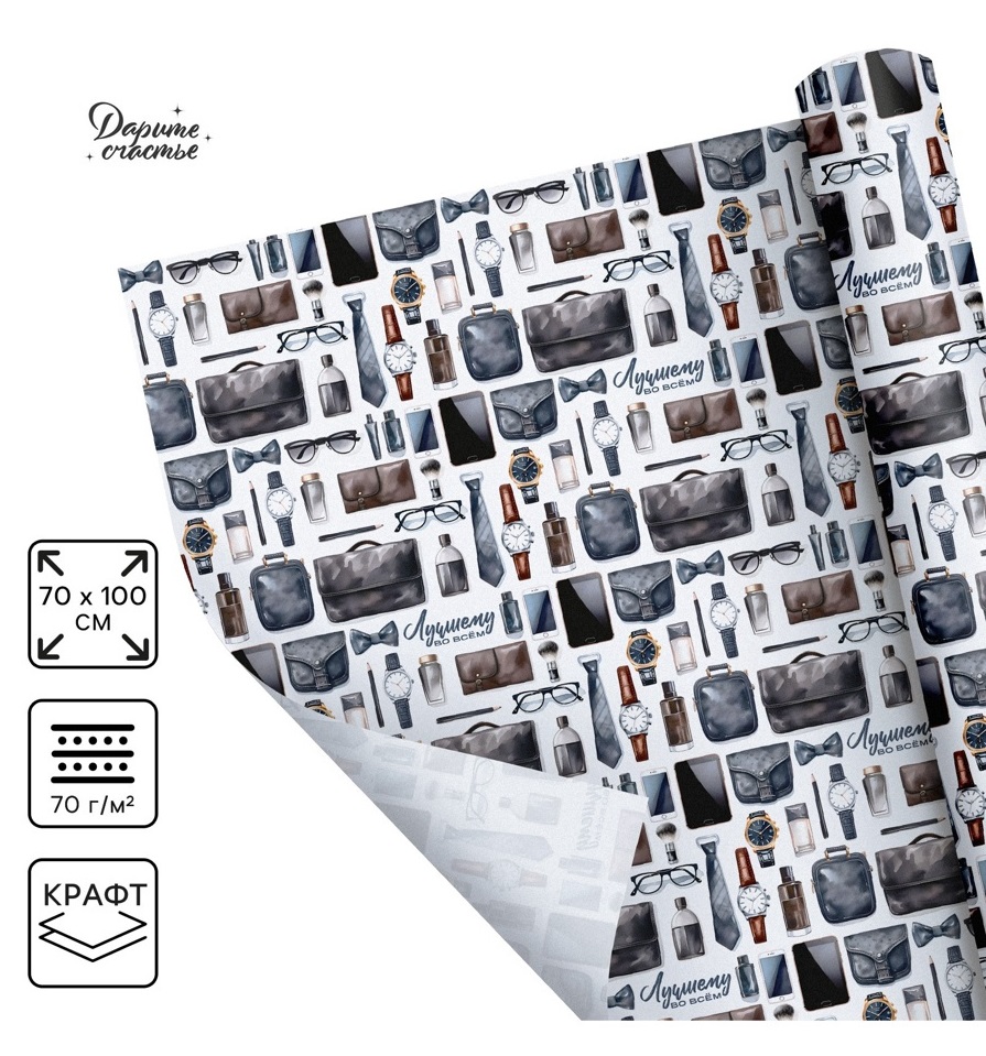 Бумага упаковочная крафтовая «Лучшему во всем», 70 × 100 см 10175203