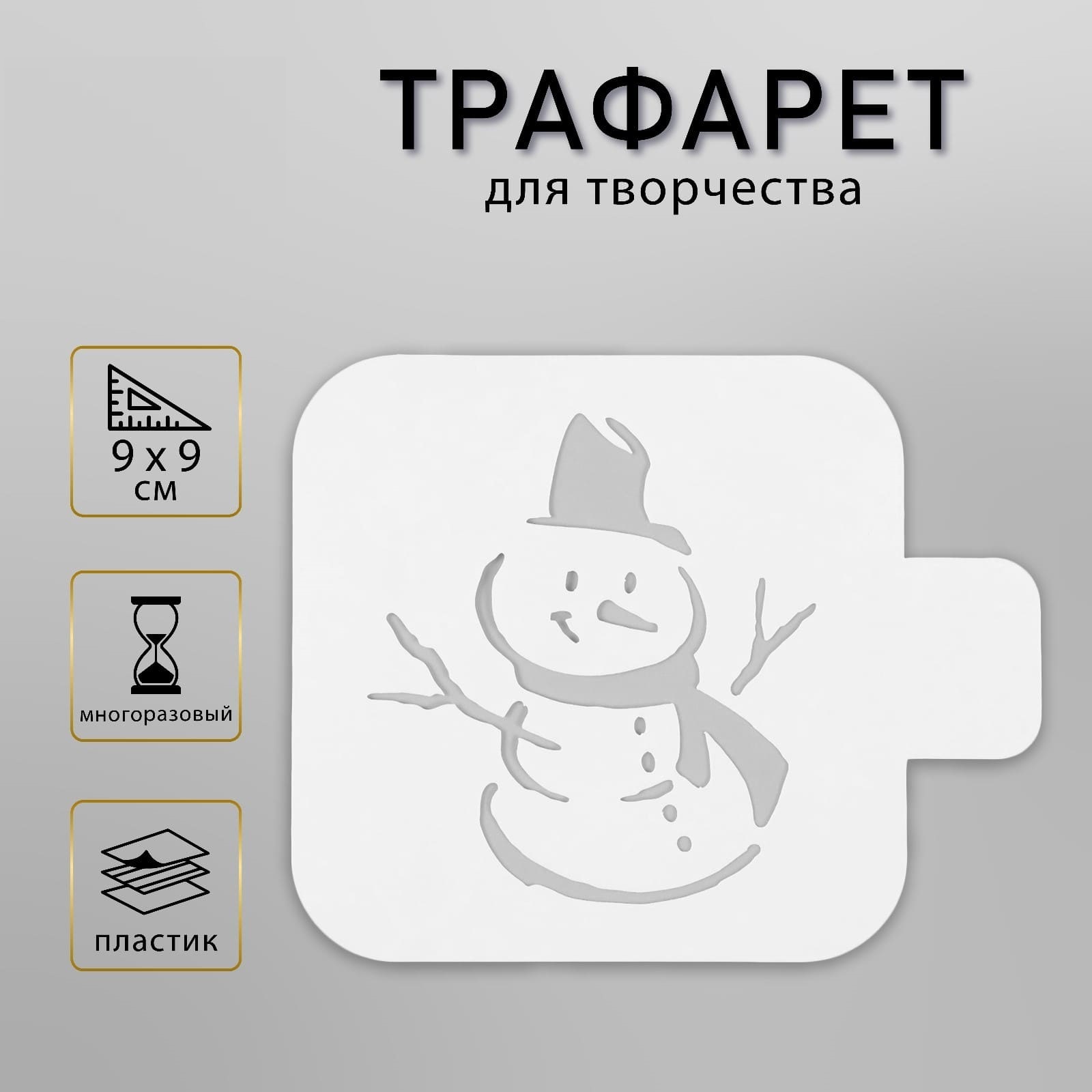 Трафарет новогодний пластиковый "Снеговик", размер 9х9 см
