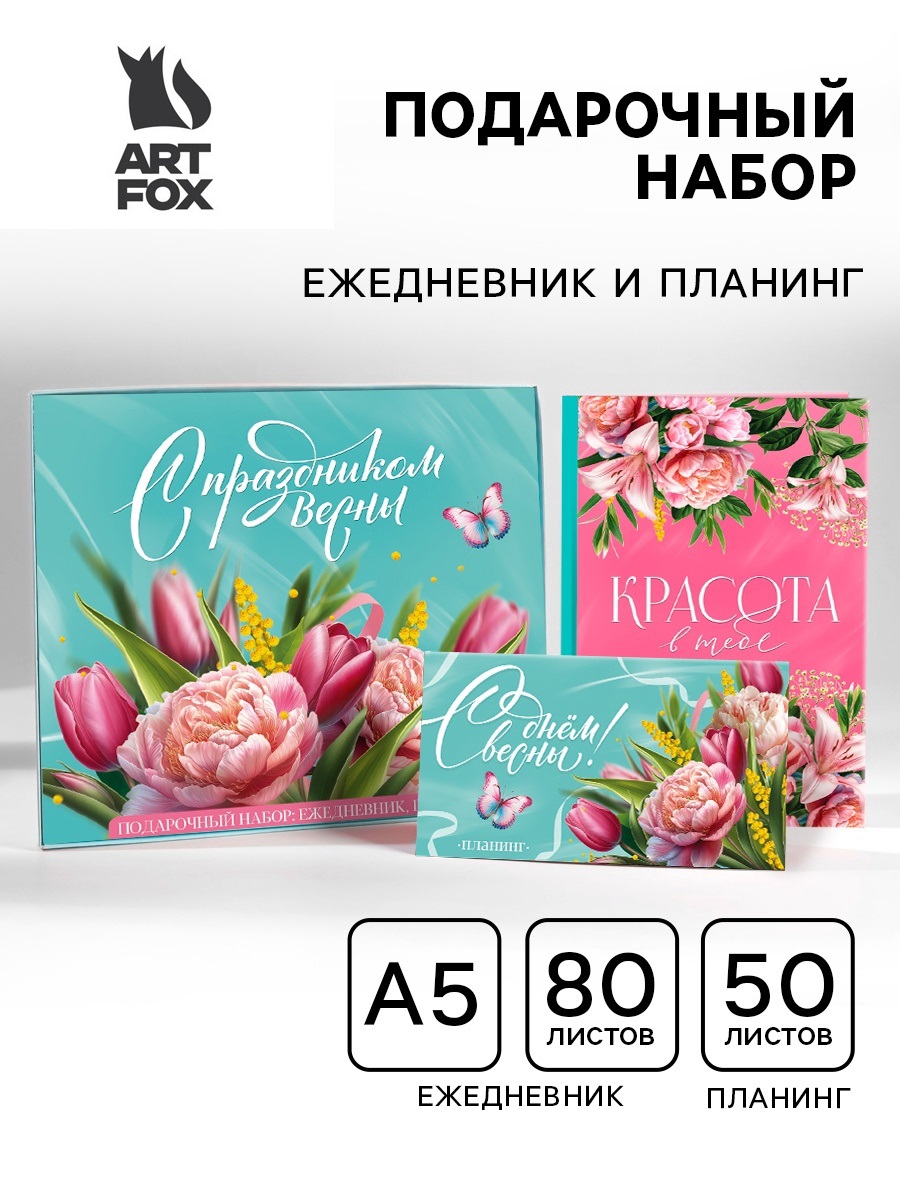 Подарочный набор: ежедневник А5, 80 листов и планинг, 50 л. "С праздником весны!" 10669518