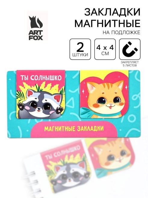 Магнитные закладки 2 шт, 4х4см, на подложке "Мечтай читай люби" 10731896
