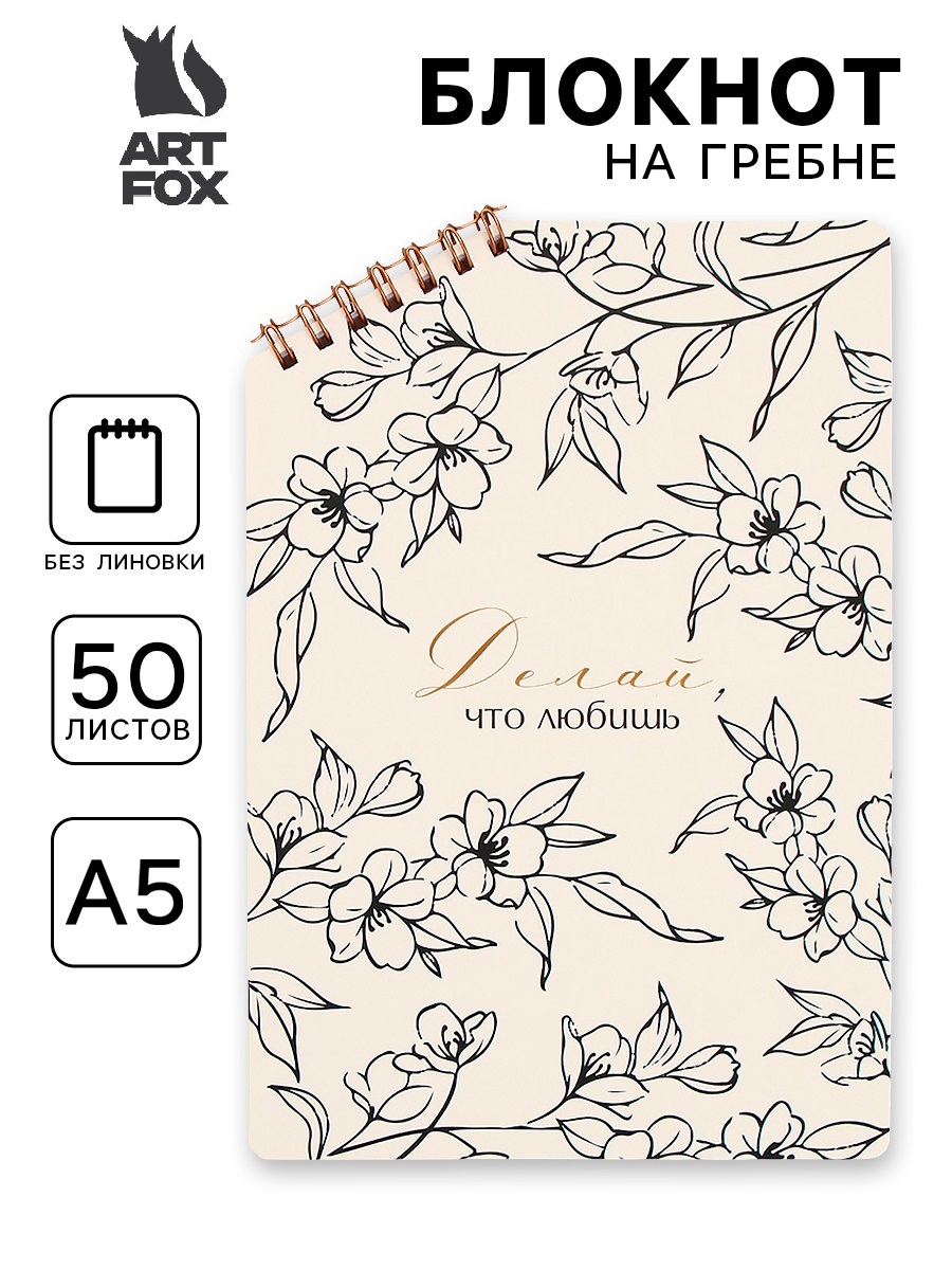 Блокнот А5, 50 л. На скошенном гребне. Белые листы. "Цветы" 10852701