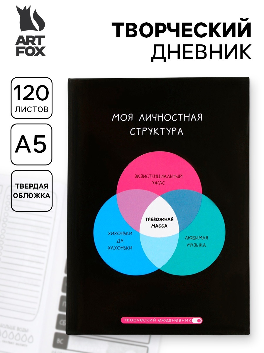 Ежедневник творческого человека с заданиями А5, 120 л. В твердой обложке "Тревожная масса" 10866609