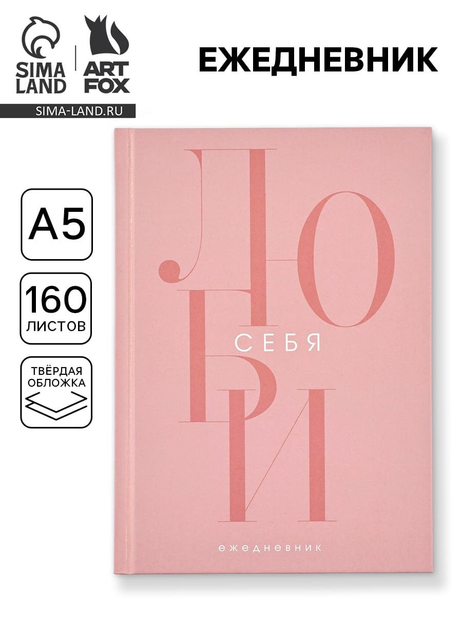 Ежедневник А5, 160 листов, в твердой обложке "Люби себя" 10883941