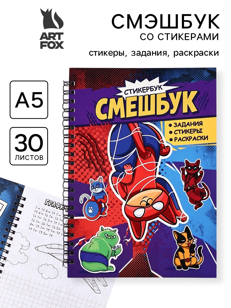 Смешбук со стикерами А5, 30 листов "Супер коты" 10893836