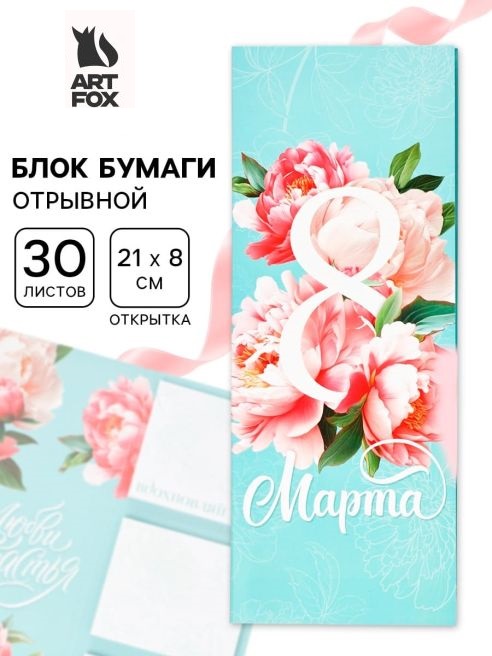 Стикеры с отрывными листами, 30л в открытке "С 8 марта. Бирюзовый" 10895178