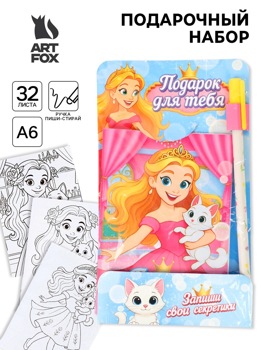 Подарочный набор: блокнот раскраска А6, 32 л.и ручка пиши-стирай "Принцесса" 10895197