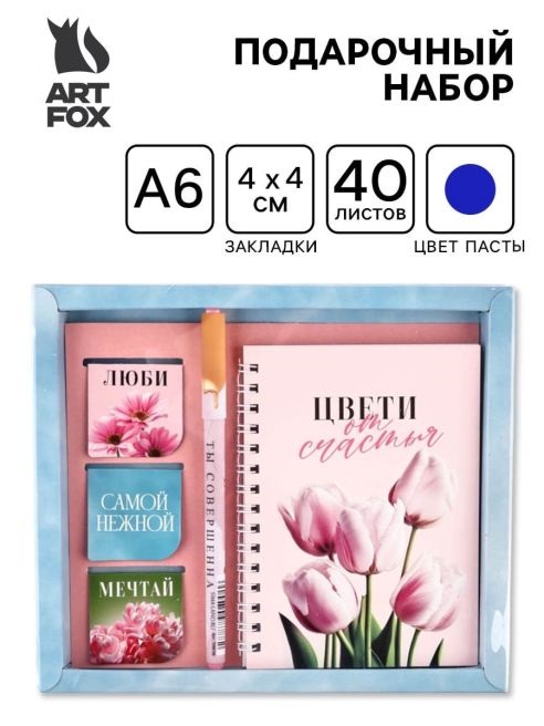 Подарочный набор: Блокнот А6, 40 л. Магнитные закладки и ручка "Цвети от счастья" 10908581