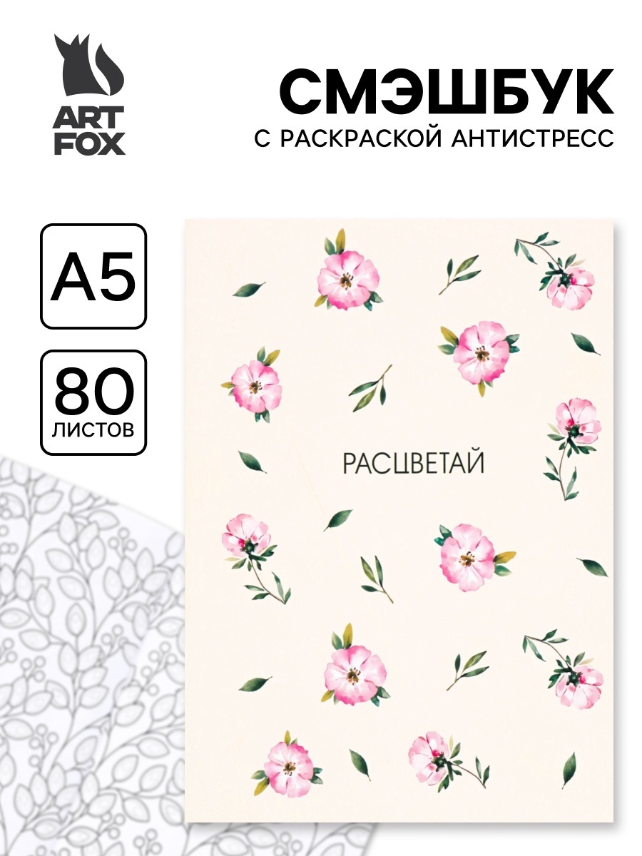 Ежедневник-смэшбук с раскраской "Расцветай", А5 80 листов 10970429