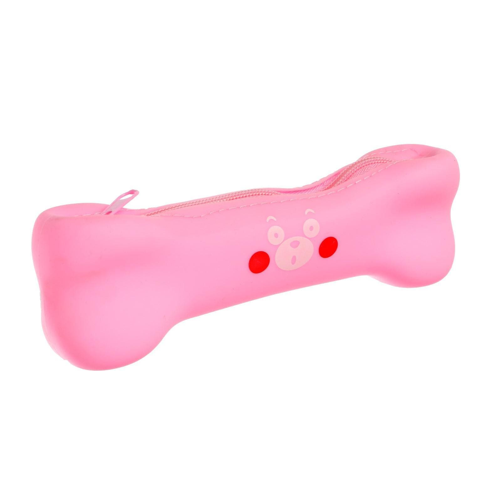 Пенал школьный на молнии силиконовый Кость розовый 159039