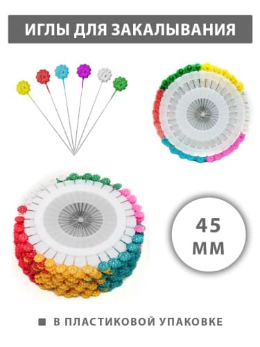 Иглы для закалывания " KWELT " Цветочки 45мм 30шт*12, с цветными головками, термоусадка, 10323010/170724/5012248