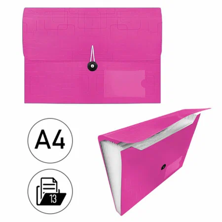 Папка на резинке " KWELT " А4 13 отделений, Квадраты, розовая, пластик 0,7мм, текстура поверхности - песок, индексные ярлычки, карман для визитки