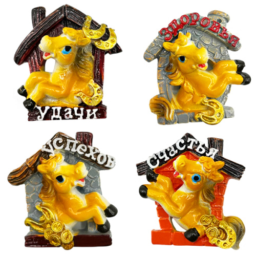 Символ года " KWELT " магнит Жеребенок и пожелания, 4,8*5см, 4 дизайна (без возможности выбора дизайна), полистоун, пакет