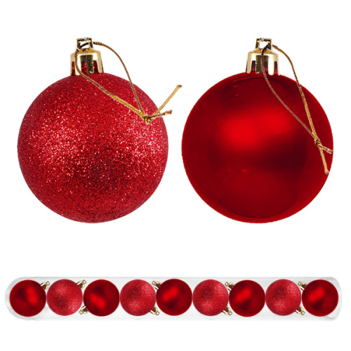 Набор шаров " KWELT " d=5,5см 9шт, красные (глянцевые, с глиттером), пластиковый тубус