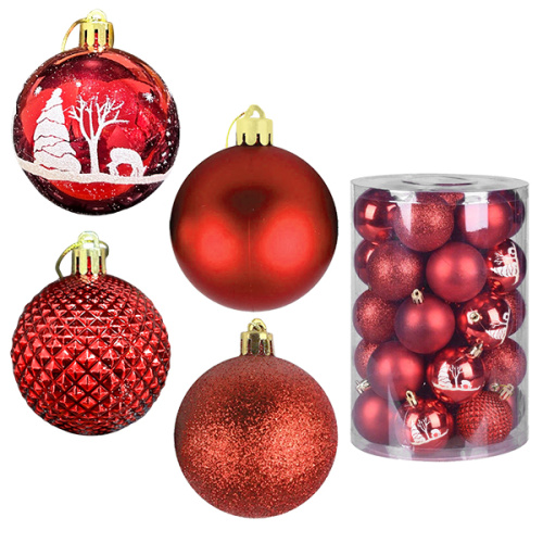 Набор шаров " KWELT " d=4,5см 20шт, красные (многогранные, матовые, с узором, с глиттером), пластиковый тубус