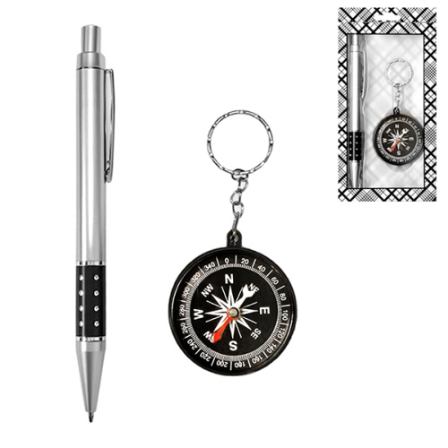 Набор подарочный " KWELT " 2в1 ручка шариковая автоматическая, синяя, брелок-компас, пластиковая упаковка, европодвес