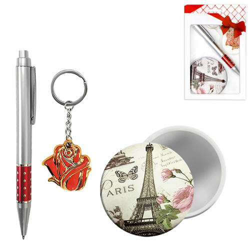 Набор подарочный " KWELT " 3в1 ручка шариковая автоматическая, синяя, брелок, зеркало, пластиковая упаковка, европодвес