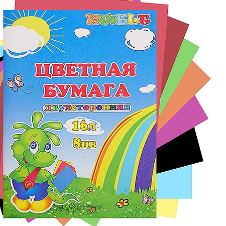 Бумага цветная А4 двухсторонняя 16л 8цв " KWELT ", на скобе