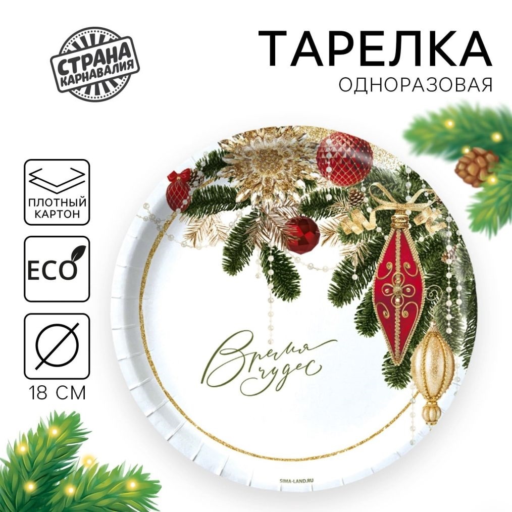 Тарелка новогодняя бумажная «С Новым годом», одноразовая