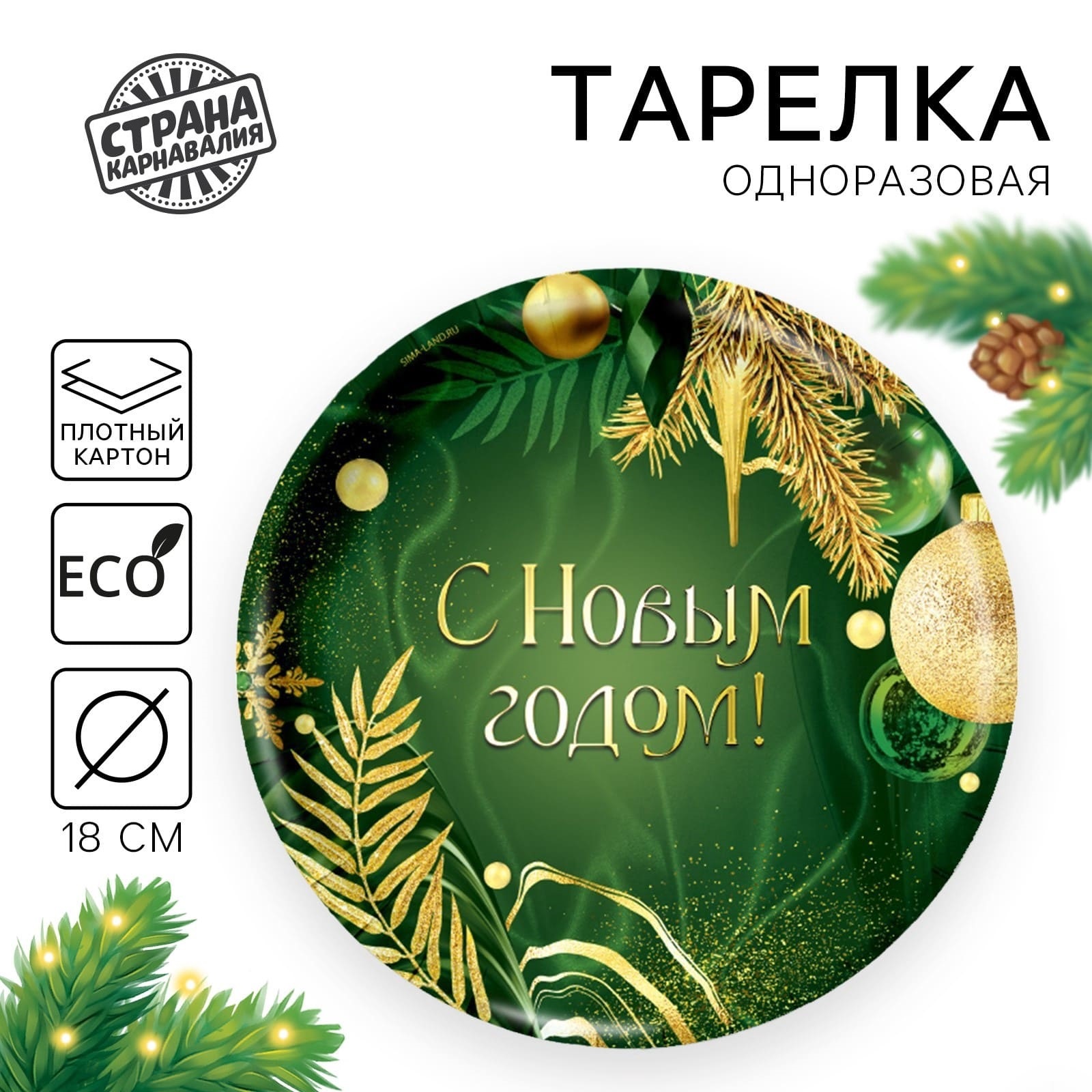 Тарелка новогодняя бумажная «С Новым годом», изумруд, одноразовая