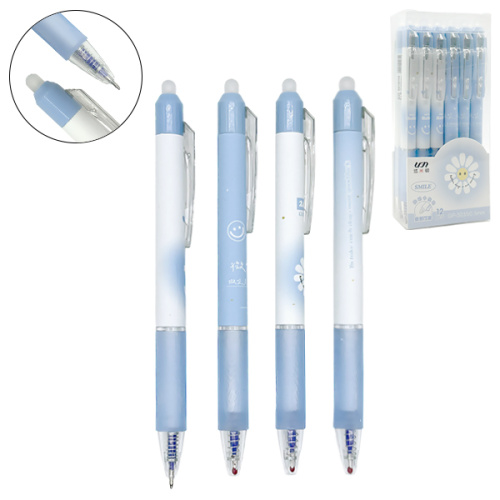 Ручка пиши-стирай автоматическая " KWELT " Smile, гелевая 0,5мм синяя, резиновый держатель, с силиконовым ластиком, ассорти 3 дизайна, пластиковая упаковка