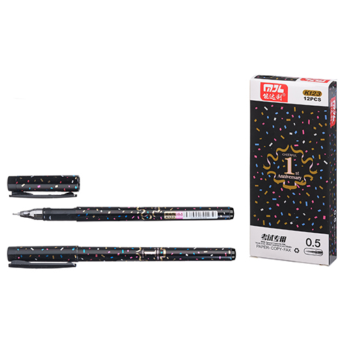 Ручка гелевая " Basir " Конфетти черная 0,5мм, толщина письма 0,25мм, игольчатый наконечник, корпус чёрного цвета с рисунком-цветные конфетти, картонная упаковка